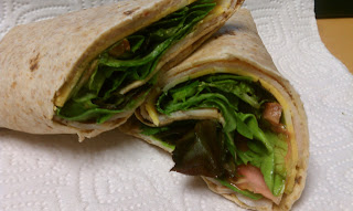 I don't think I have ever had a white plum before, but these are fab. I must buy them again next weekend. For lunch today, I made a turkey and cheese wrap: